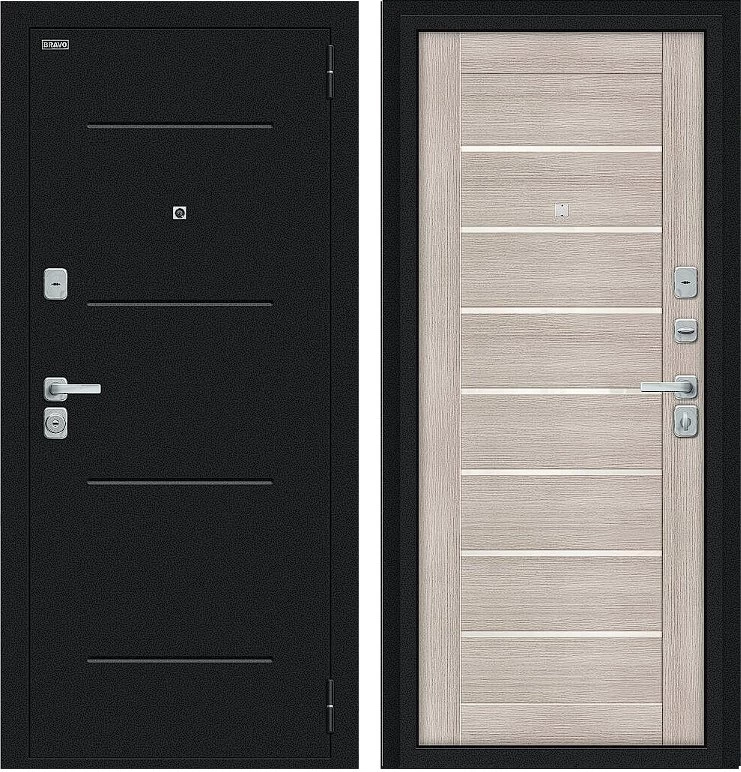 Надежная входная Дверь Браво Техно/BChrome Букле черное/Cappuccino Melinga премиум класса по цене 34 639 руб. Большая толщина стали защитит от проникновения в ваш дом, квартиру или коттедж. Используется очень качественная фурнитура: замки, цилиндры, ручки, защелки. Покрытие и отделка двери изготовлено под внимательным контролем производителя. Дверь имеет долгий срок службы и гарантию.